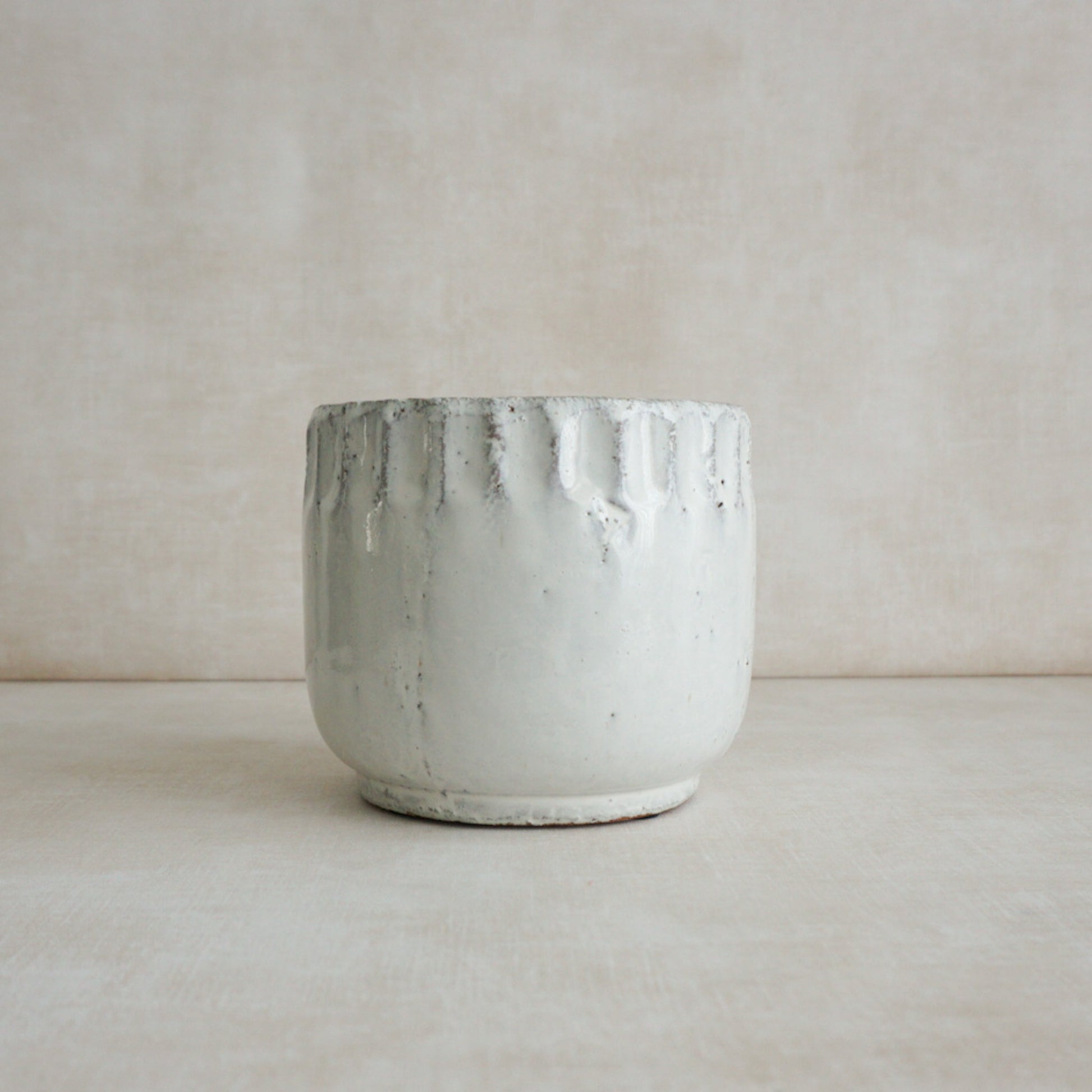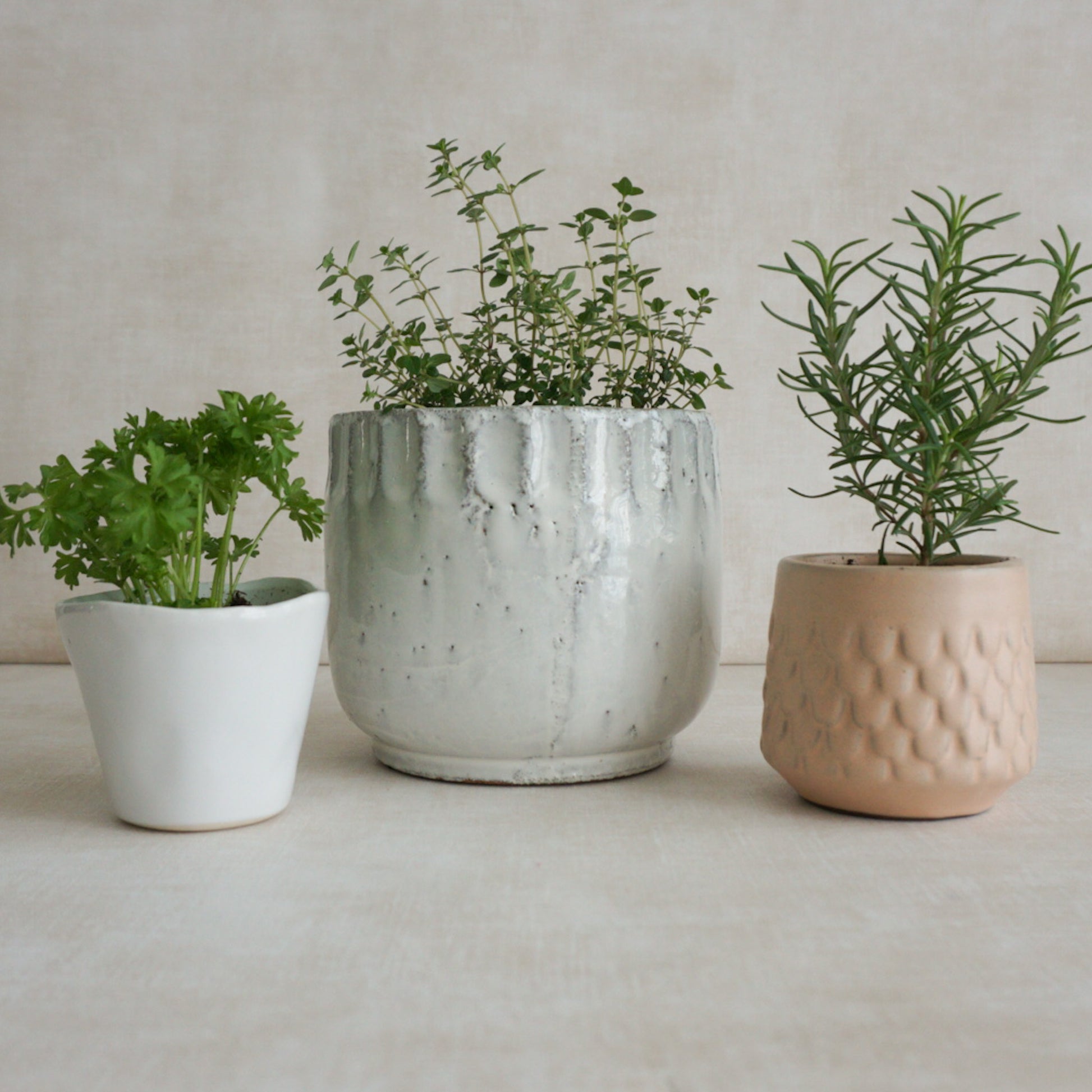 This planter pot has a rustic feel. Made of rough glazed terracotta, this substantial, heavy pot is great for making your balcony, backyard or patio look like an outdoor haven! Comes with pads on the bottom for preserving surfaces from scratches.