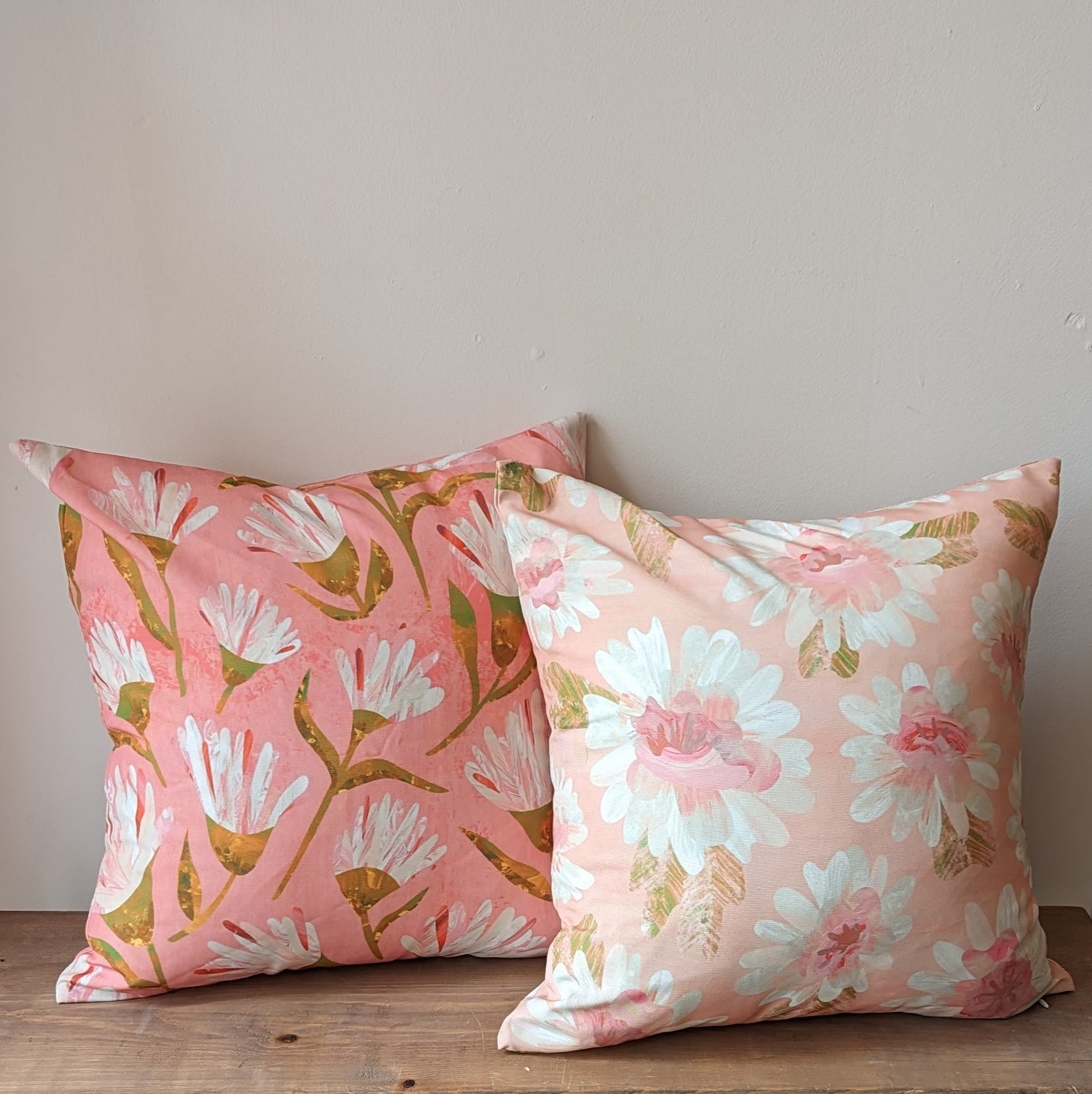 Pastel Gingham, Pastel Floral Outdoor Waterproof Pillow Cover
