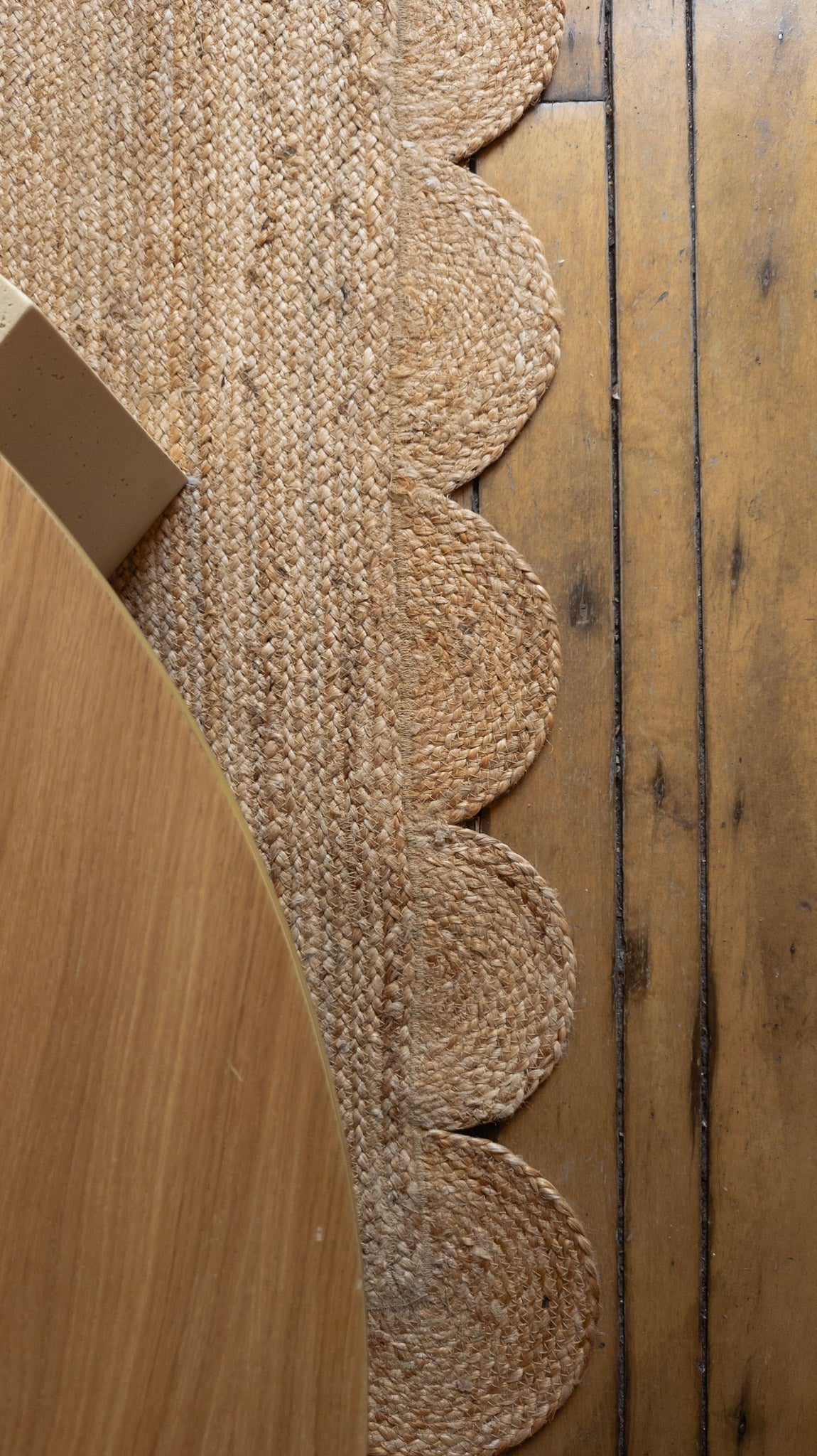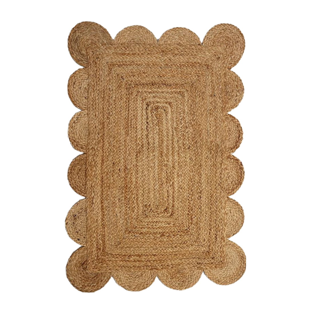 A beautiful handmade jute rug expertly crafted to bring a touch of rustic charm to your home. Each rug is meticulously woven in India with sustainable jute fibers, renowned for their durability and eco-friendliness. Naturally resilient and long-lasting, perfect for high-traffic areas and usable on covered outdoor areas.